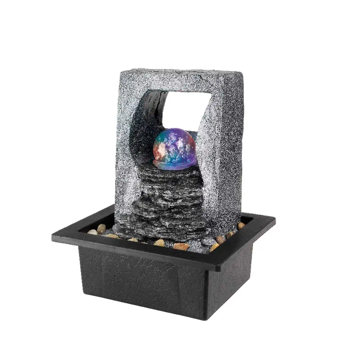 Ce modèle de haute qualité vous offre le spectacle d'une cascade au sein d'un rocher, le tout illuminé par une boule en verre aux couleurs changeantes.