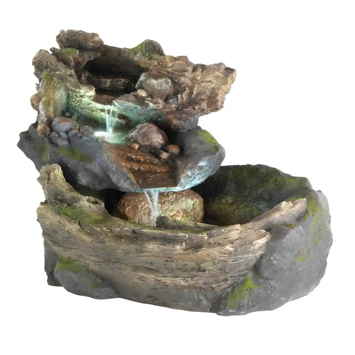 - Fontaine lumineuse en polyrésine imitant la roche.