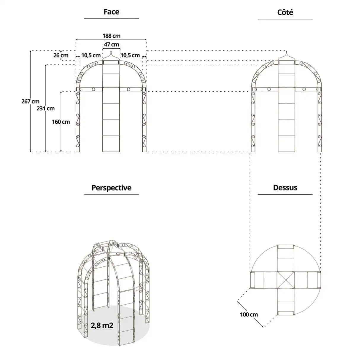 Gloriette en fer 4 pieds Arcade 2,80m2 Tres bon produit et prix très abordable