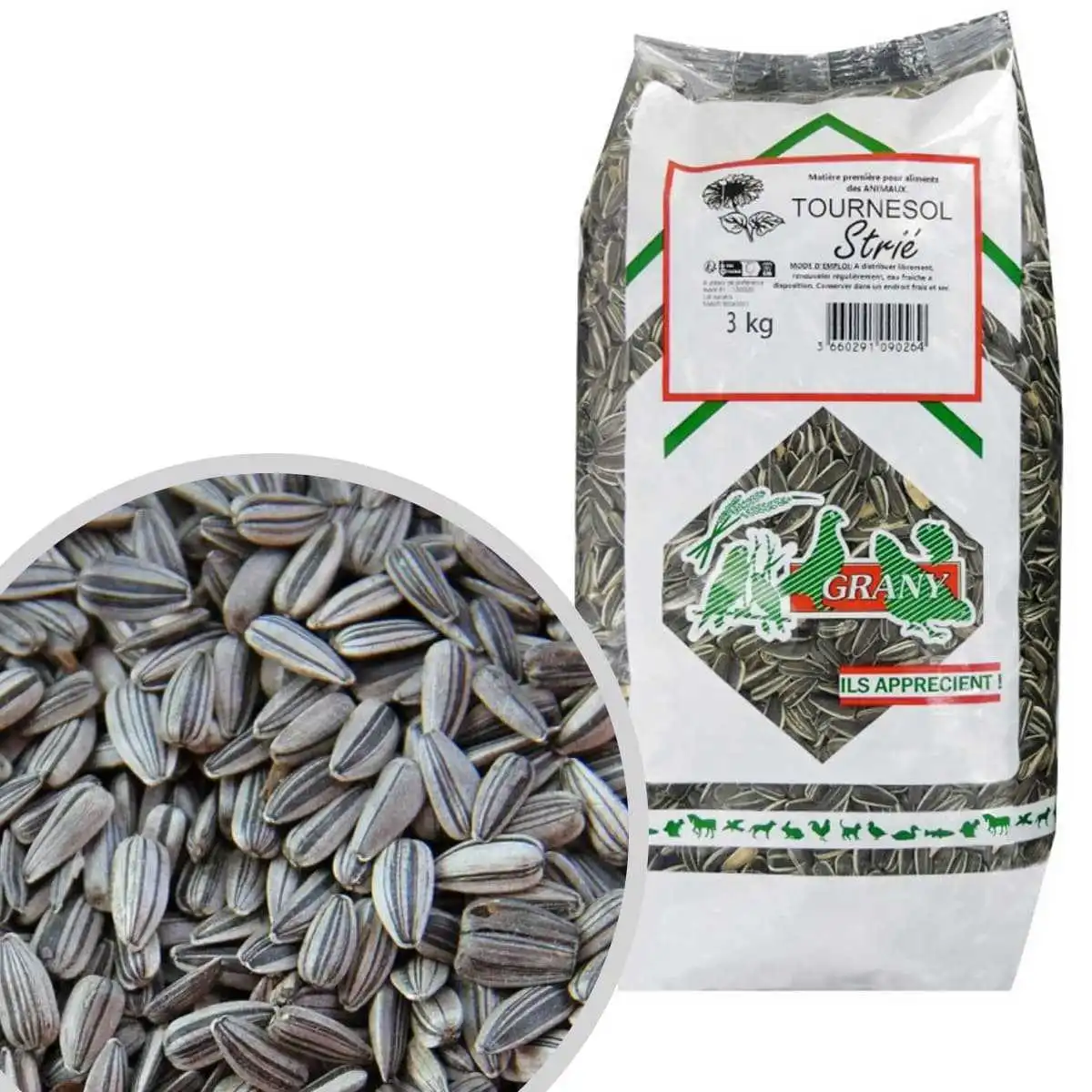 Le tournesol strié est une graine oléagineuse, riche en lipides. Il favorise non seulement le bien-être physique des oiseaux en leur apportant vitamines et minéraux mais il renforce aussi leur plumage (plus résistant et plus brillant).