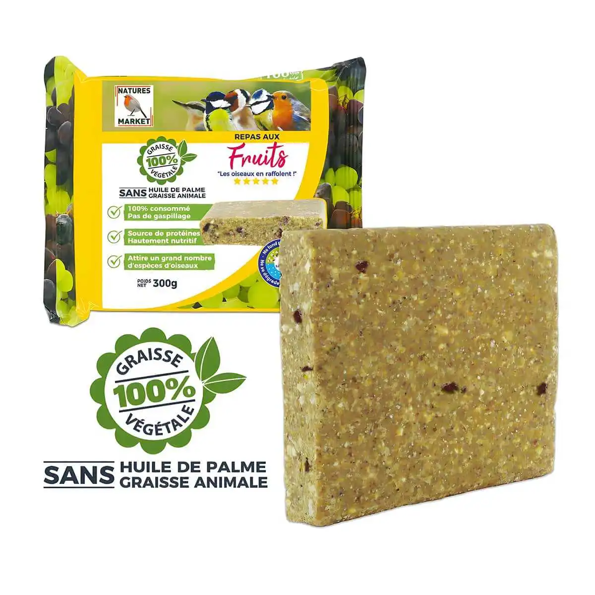 Bloc de graisse végétale pour oiseaux sans huile de palme - fruits Excellent produit Très pratique les oiseaux en raffolent