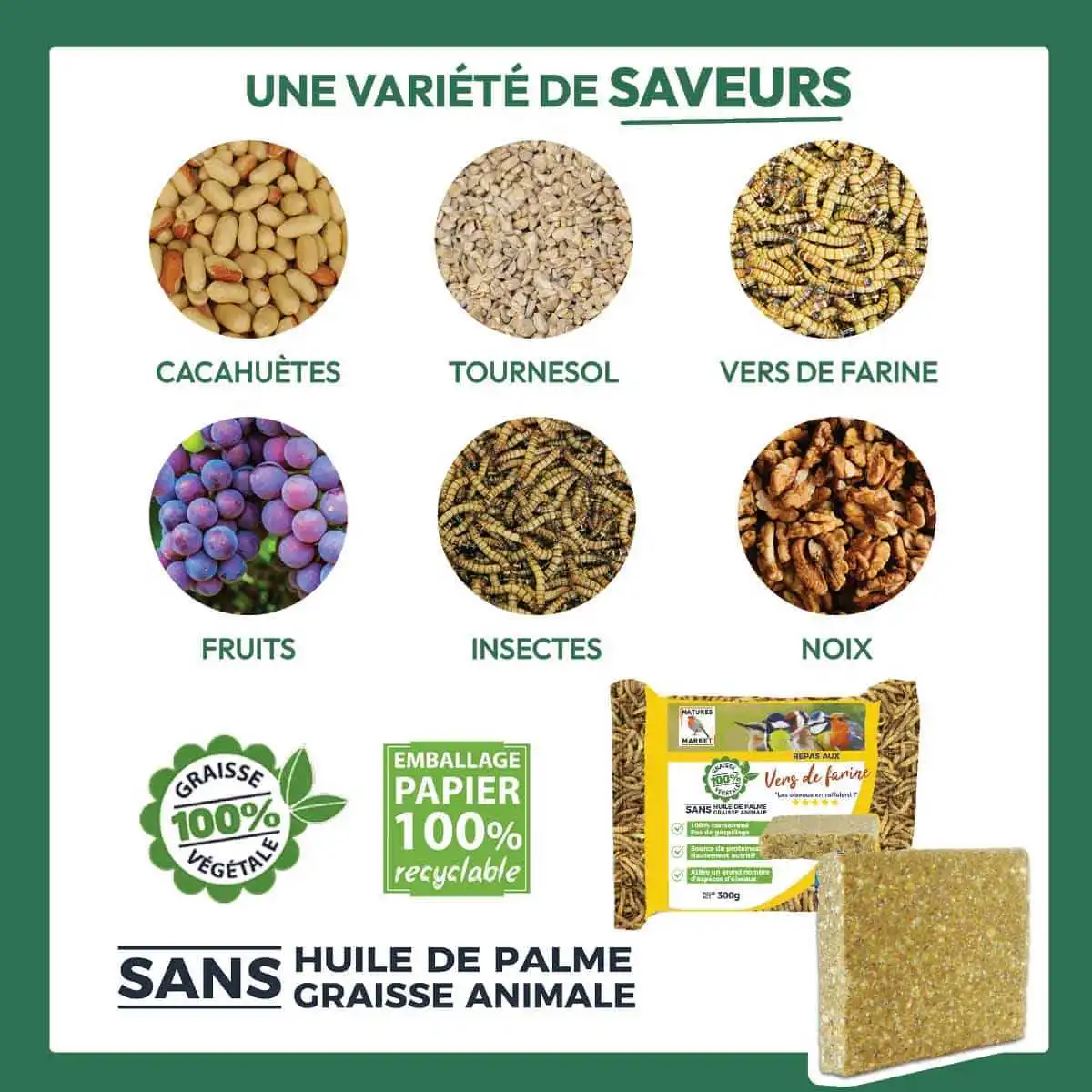 Bloc de graisse végétale pour oiseaux aux vers de farine