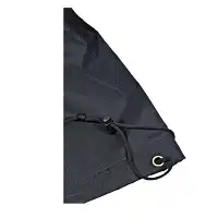 Housse bâche protection table ronde + 4 chaises diam. 163cm Le tissu de la housse est épais, les coutures de bonne facture avec la possibilité de resserrer la bâche en bas (cordelette) et de la fixer aux pieds de la table ou des chaises grâce à un système de scratch. À la maison, la bâche protège parfaitement une table octogonale (100-110 cm de diamètre) et ses quatre chaises en bois. La housse étant garantie 5 ans, j'attends de vérifier sur le long terme qu'elle résiste bien à l'alternance pluie/soleil de la côte atlantique.