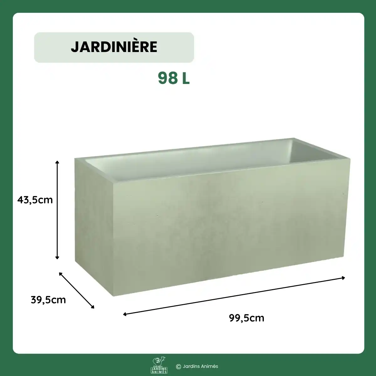 Jardinière extérieure effet béton 98L - Qualité premium, double paroi L.99,5 x l.39,5 x H.43,5cm - Vert amande