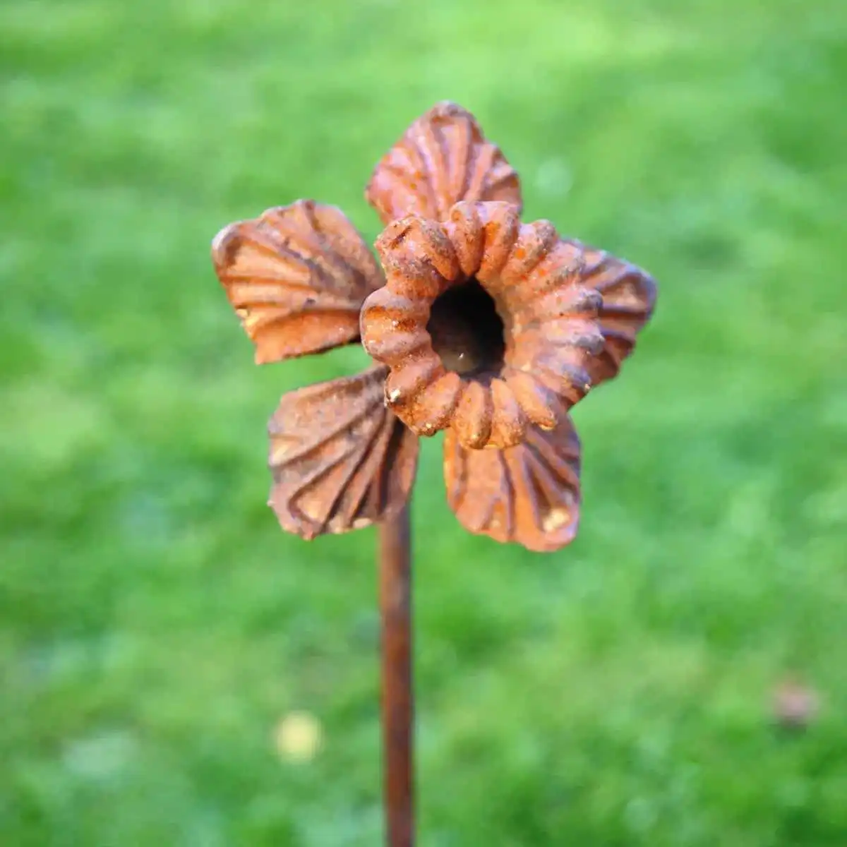 Conçue et fabriquée en Grande-Bretagne, la fleur repose sur une tige de plus d'un mètre en acier massif de 6 mm et peut être placée n'importe où dans votre jardin ou dans vos pots.