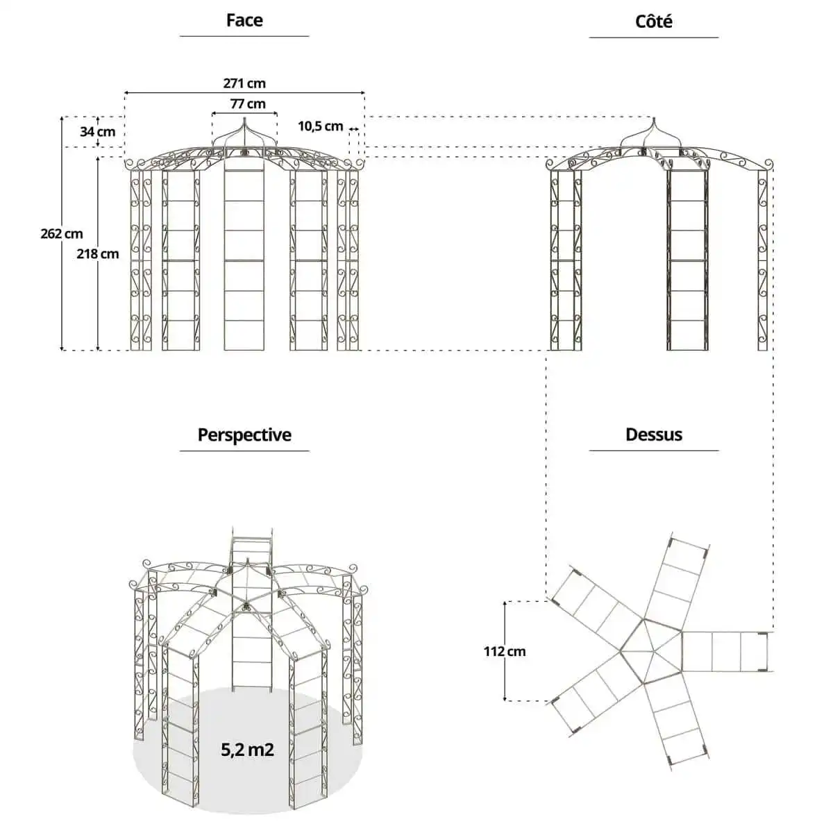 Kiosque gloriette en fer 5 pieds Pagode 5,20m2 Excellent produit rapidement installé nous sommes ravis