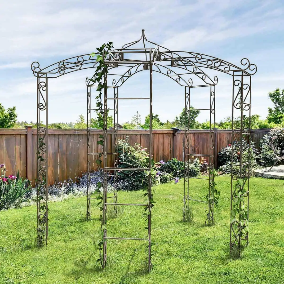 Kiosque gloriette en fer 5 pieds Pagode 5,20m2 Parfaite, dimensions exactes, facilités de montage, envoi rapide, pressée d'acheter les plantes grimpantes.