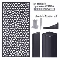 Kit supplémentaire Panneau MOSAIC vertical 1m x 2m en résine haute qualité Problème : trop souple, dès qu'il y a un peu de vent les 2 panneaux se séparent des montants ; nous avons dû ajouter des cerflex noirs !!! A ce prix là, nous nous attendions à mieux...