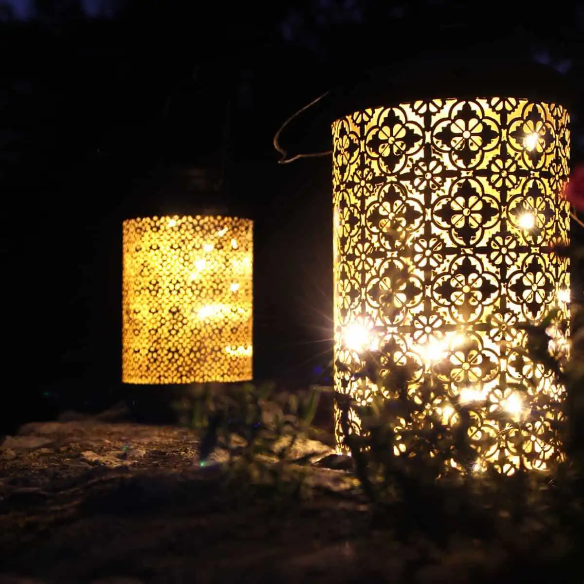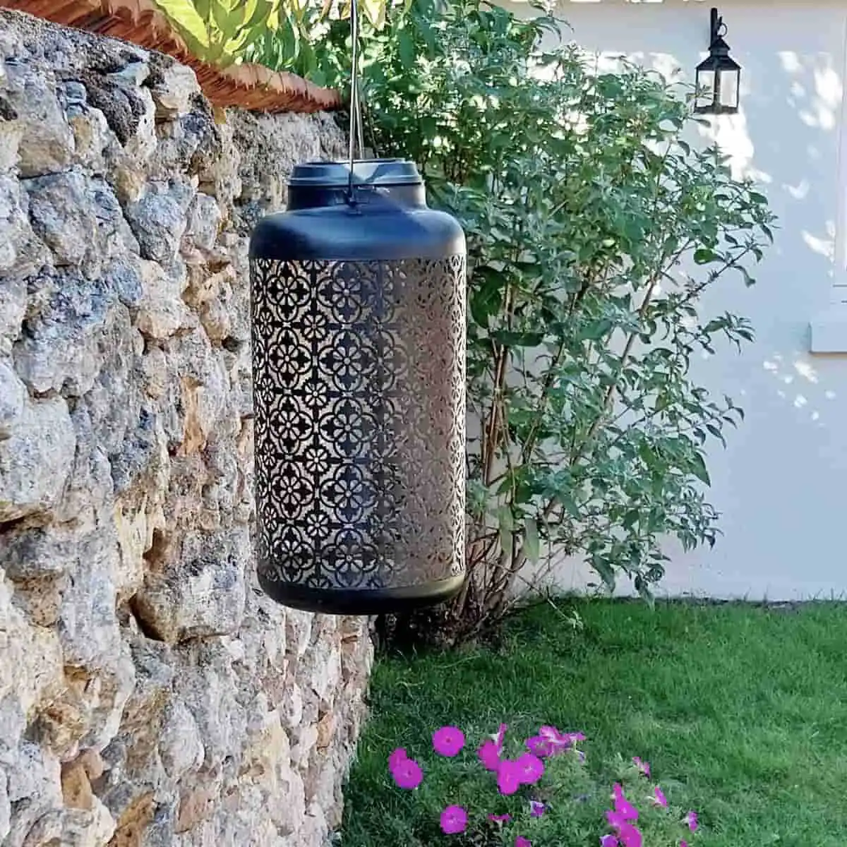 - Grande lanterne solaire extérieure en métal ajouré