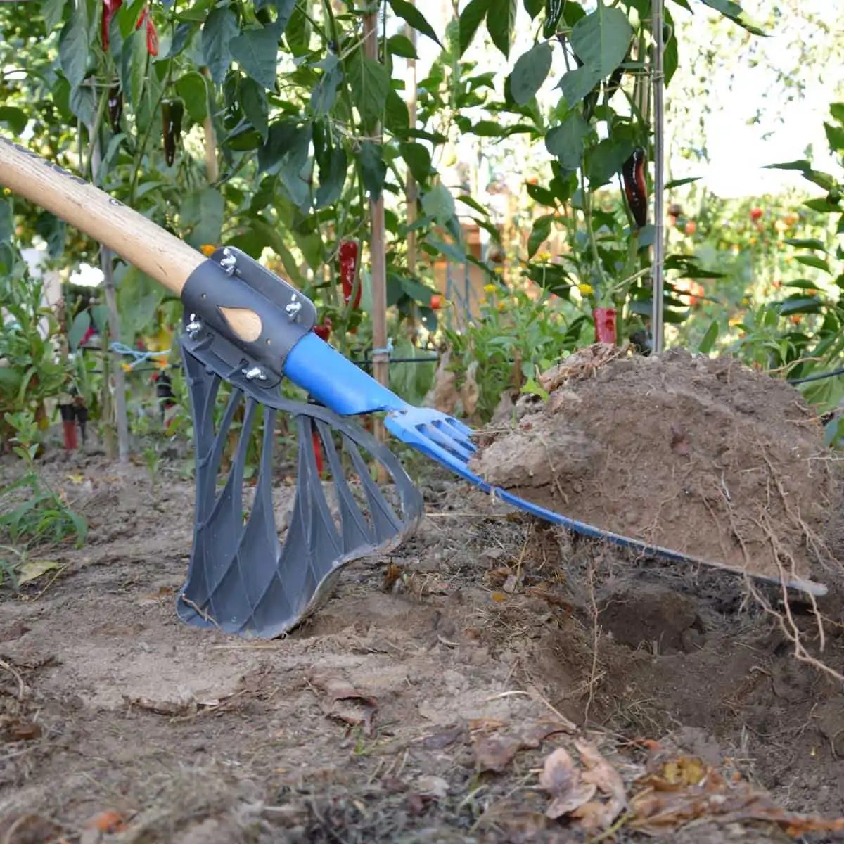 Ainsi vous pouvez décompacter la terre, déraciner, creuser ou récolter facilement et sans forcer.