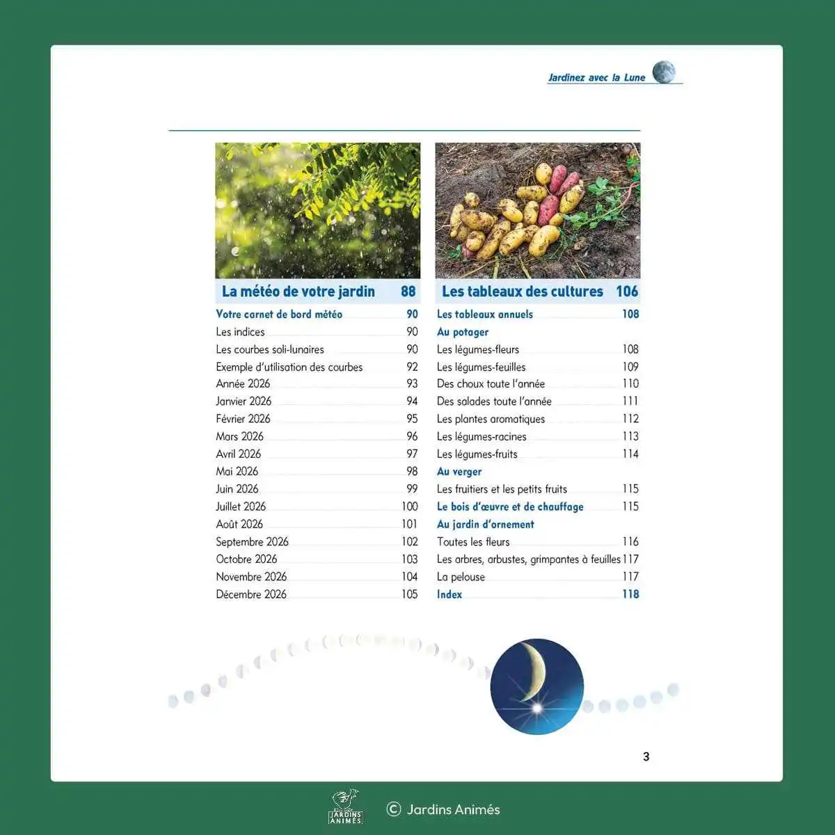 Jardinez avec la Lune, véritable référence dans le domaine depuis 40 ans, est un livre à l'aspect "carnet de bord" qui vous permettra de tout savoir sur le jardinage avec la lune. Laissez-vous guider à travers les 120 pages de conseils et abordez des sujets précis :