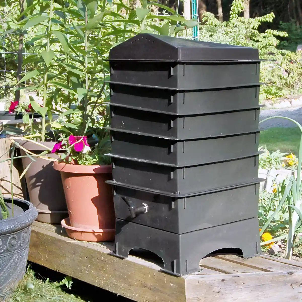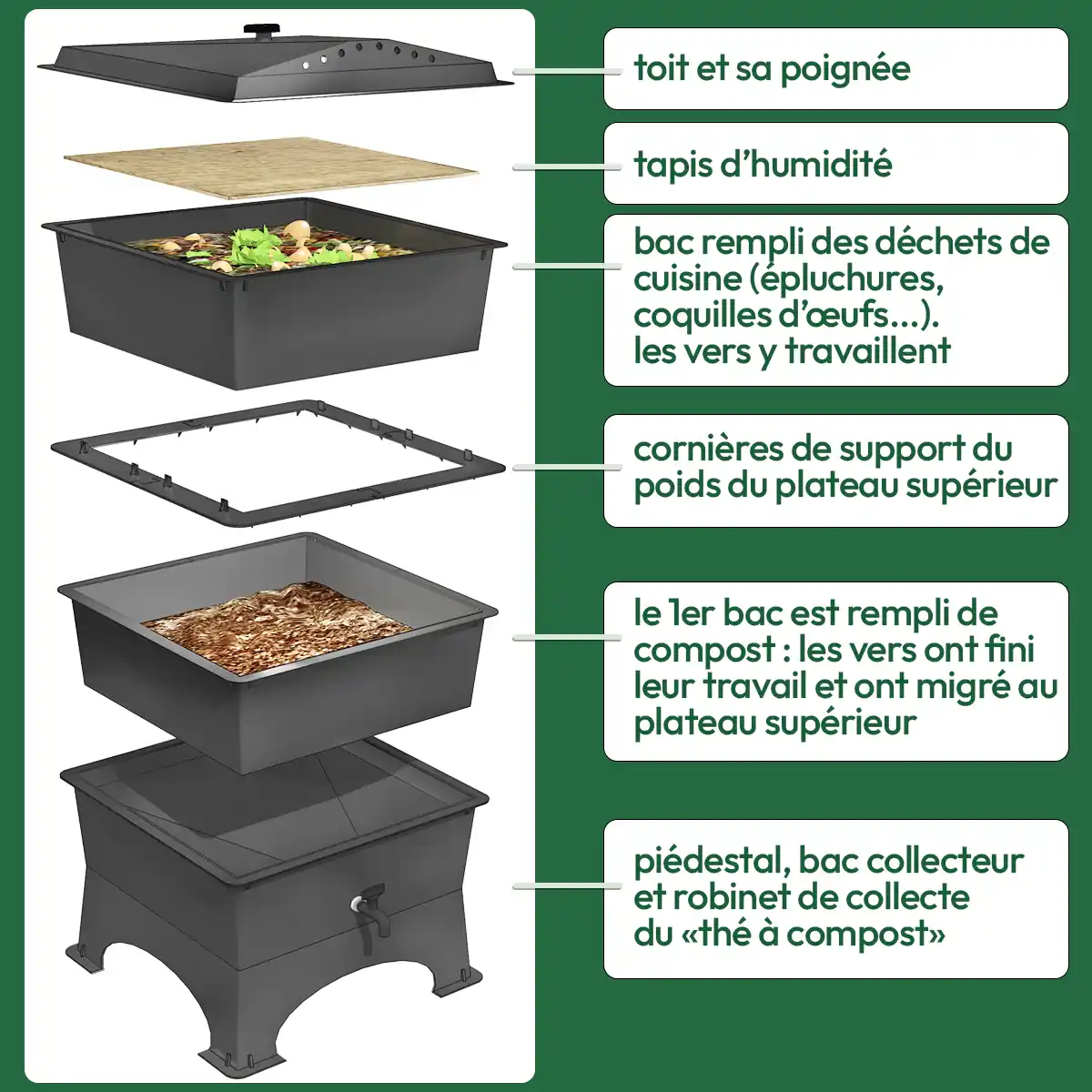 Lombricomposteur complet sauf les vers : pour ceux qui ont pu en récupérer d'une autre manière ou qui veulent étendre leur capacité de compostage en ayant déjà des vers dans un lombricomposteur.