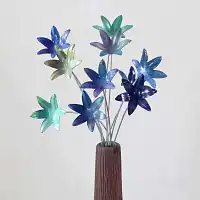 Petites fleurs artisanales en acier - Nuances de bleu - lot de 10 Adorables petites fleurs. Font très naturelles. Je les ai plantées dans mes pots à l'entrée de la maison : ils sont peu ou pas fleuris en hiver et cette touche de couleur discrète va très bien au milieu des feuillages. Du coup, j'en ai acheté une nouvelle série.