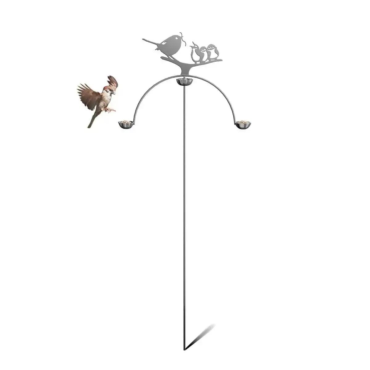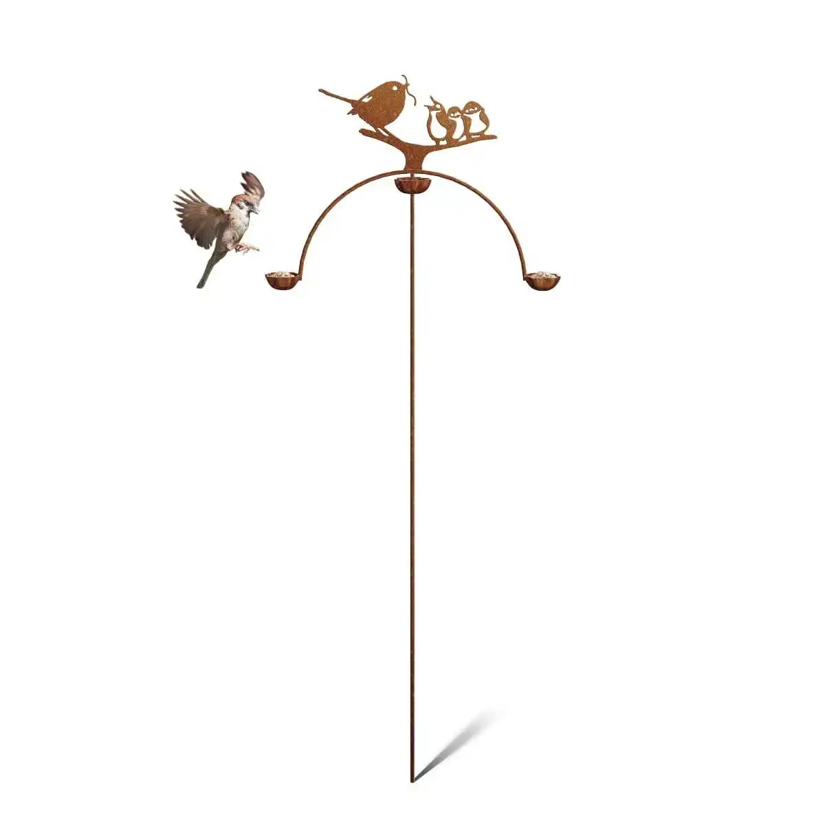 - Mangeoire balancier sur pied en acier brut - Famille d'oiseaux