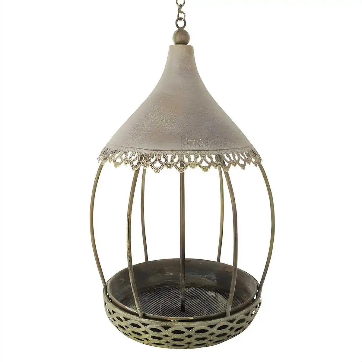 Fabriquée en métal peint en taupe époxy, la mangeoire Carrousel résiste aux intempéries tout en conservant son charme au fil des saisons. Son large toit amovible se dévisse simplement grâce à la boule supérieure, facilitant le remplissage avec un cylindre de graisse.