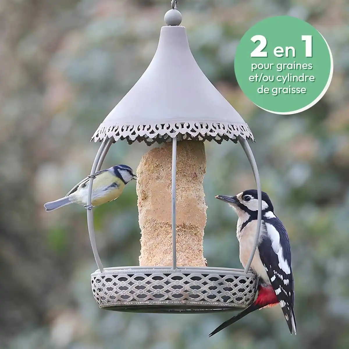 Mangeoire Carrousel 2 en 1 en métal - cylindre de graisse et/ou graines
