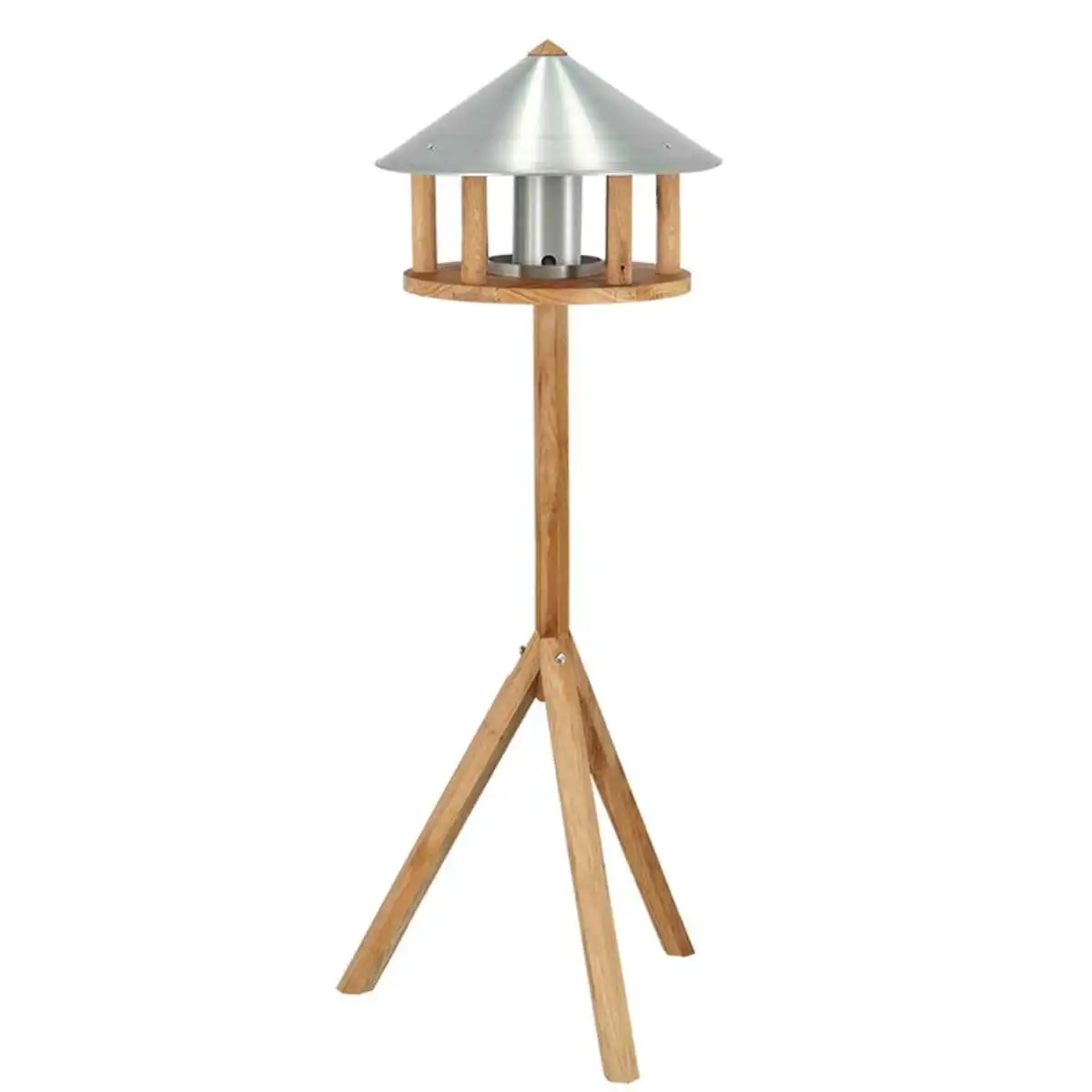 Mangeoire oiseau en chêne avec silo, pied et toit en zinc