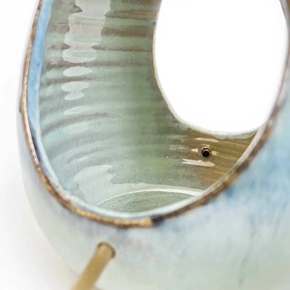 Cette jolie mangeoire en grès émaillé est fabriquée à la main par une artisane française. Polyvalente, elle est équipée d'une attache en fer pour être suspendue, à une branche par exemple. Elle peut aussi bien être posée dans le jardin, sur une table ou au sol.