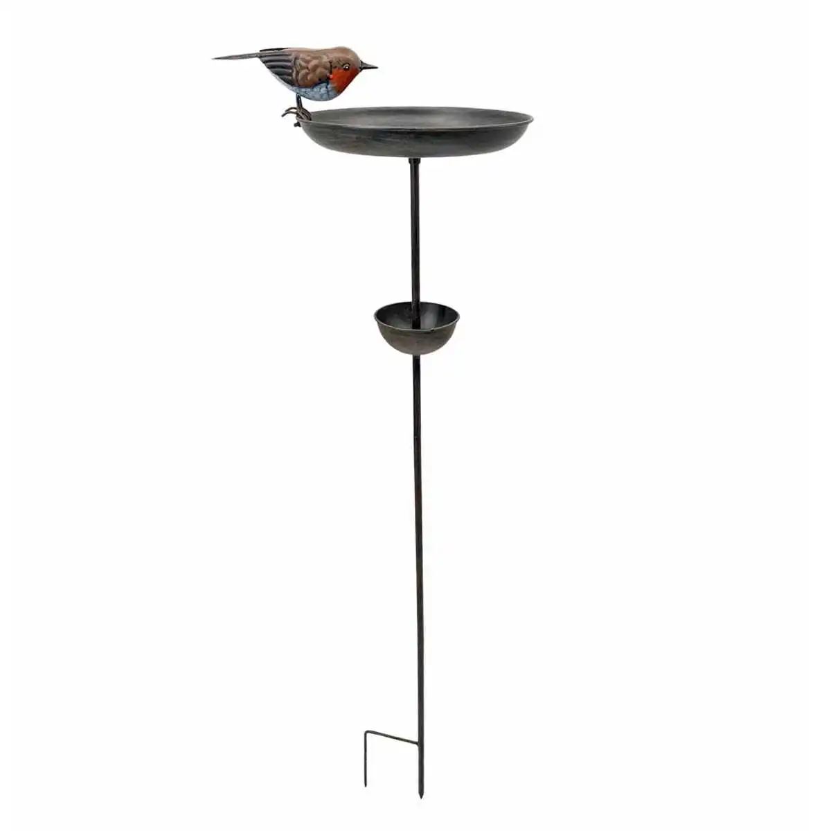 Mangeoire à oiseaux sur pied surmontée d'un rouge-gorge - L.32 x l.24 x H.109cm