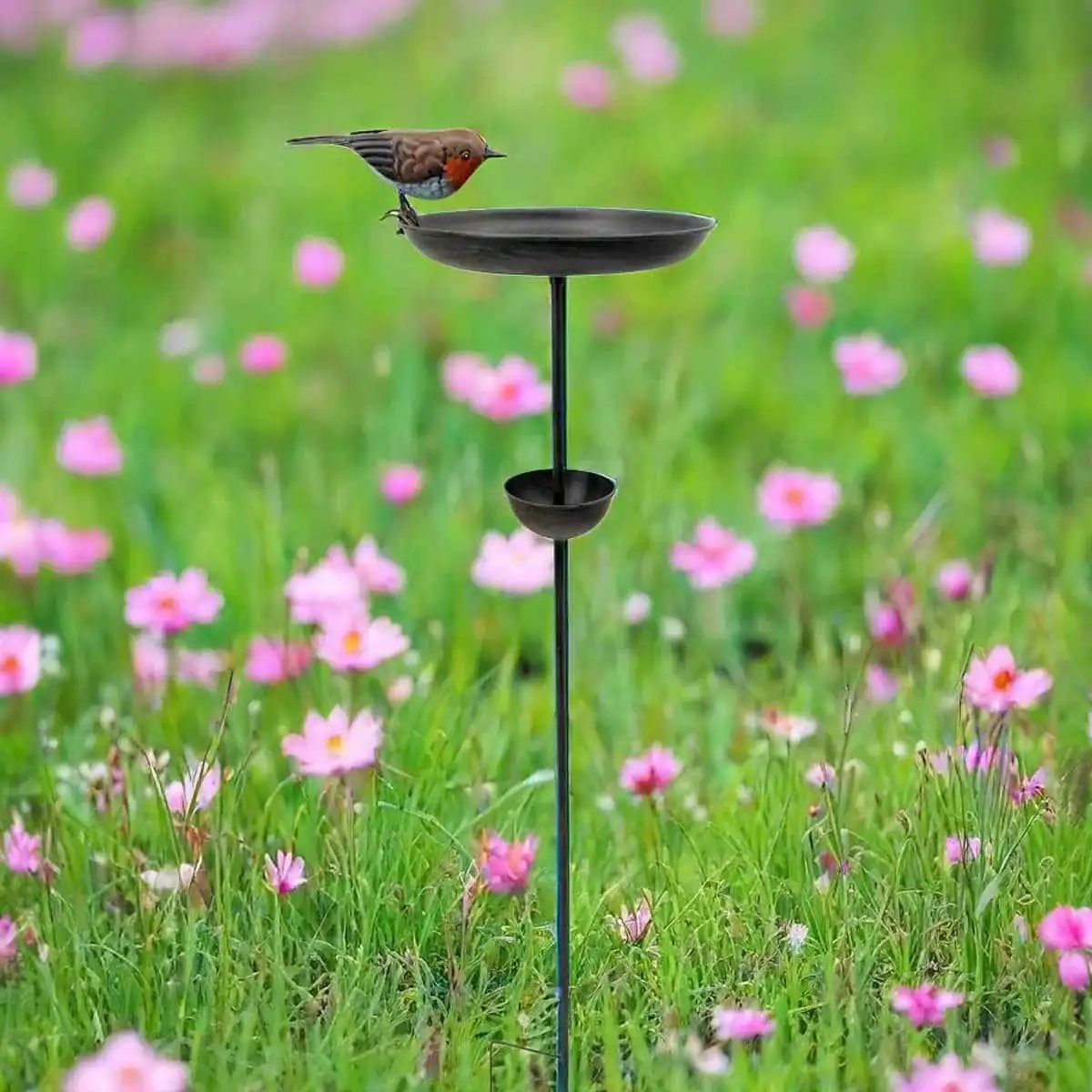 Au milieu d'un massif, à côté d'un bassin ou près d'un parterre de fleurs, ce distributeur de graines pour oiseaux s'installe facilement grâce à son pied en forme de U à planter dans le sol.