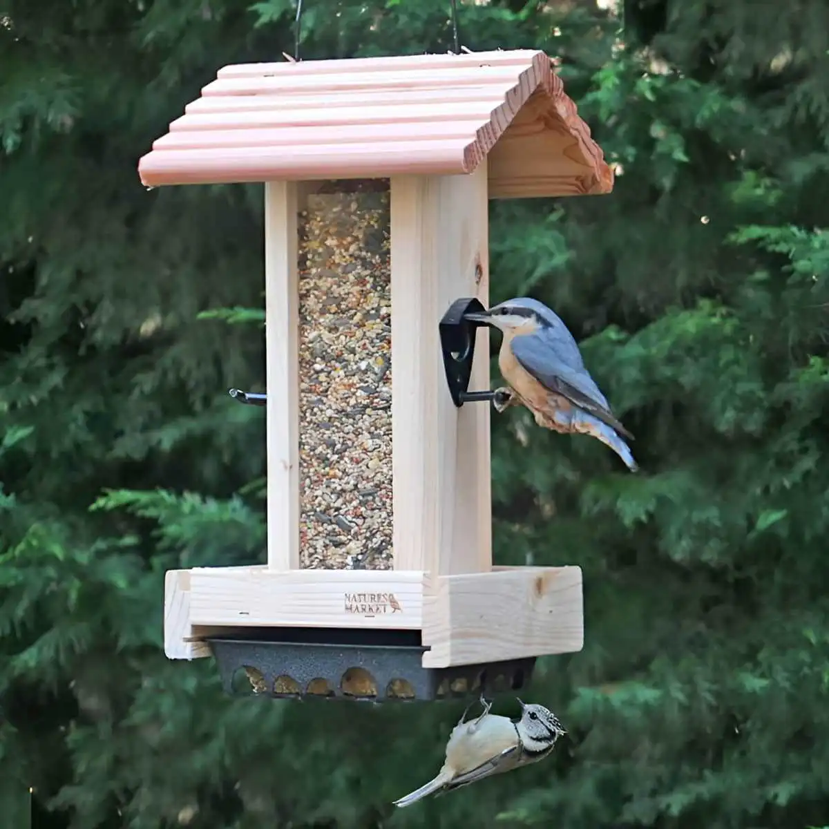 Mangeoire pour oiseaux en bois PEFC - Perchoirs, silo et réservoir à bloc de graisse