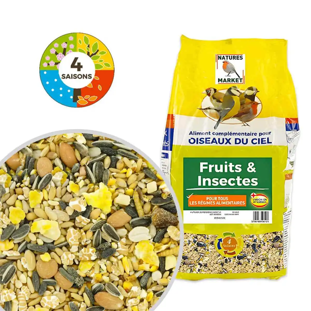 - Graines à oiseaux, fruits et insectes