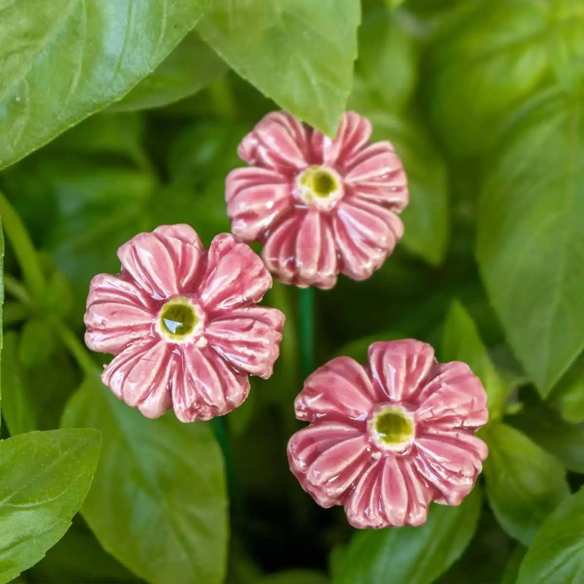 Mini bleuet rose - Fleur en céramique sur tige à planter