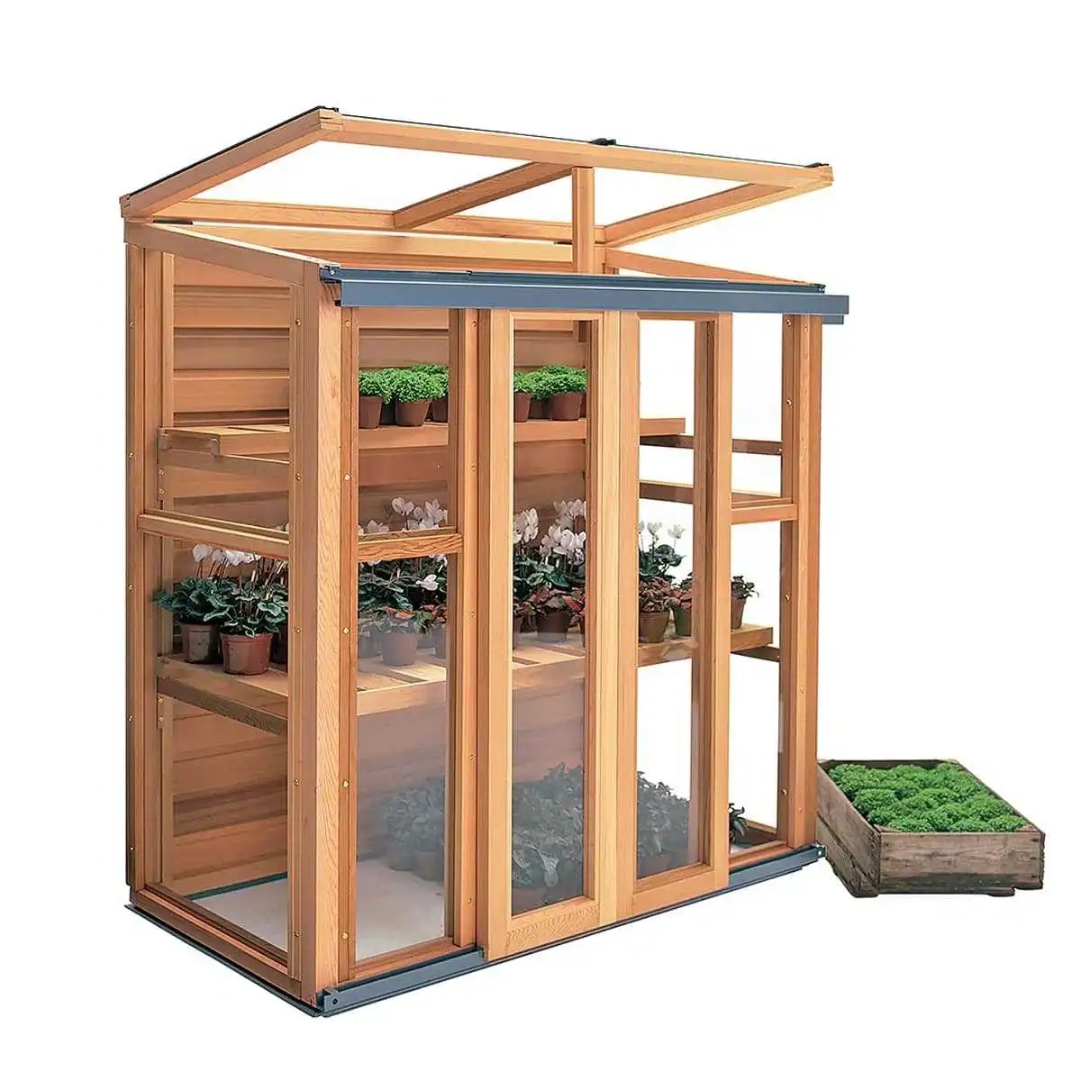 Tout comme les serres Gabriel Ash, cet accessoire est fabriqué en bois de cèdre rouge avec un assemblage tenon-mortaise. Les finitions sont en aluminium. L'ensemble offre un produit d'une qualité exceptionnelle.