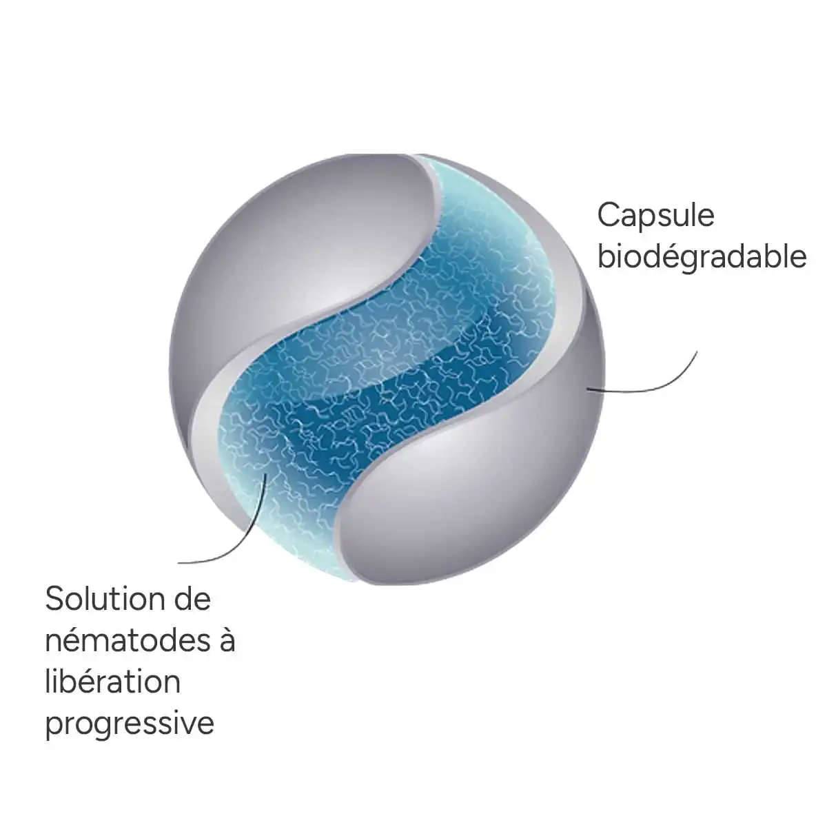 Ces nématodes sont protégés dans des petites capsules pour un transport facilité et une conservation optimisée.