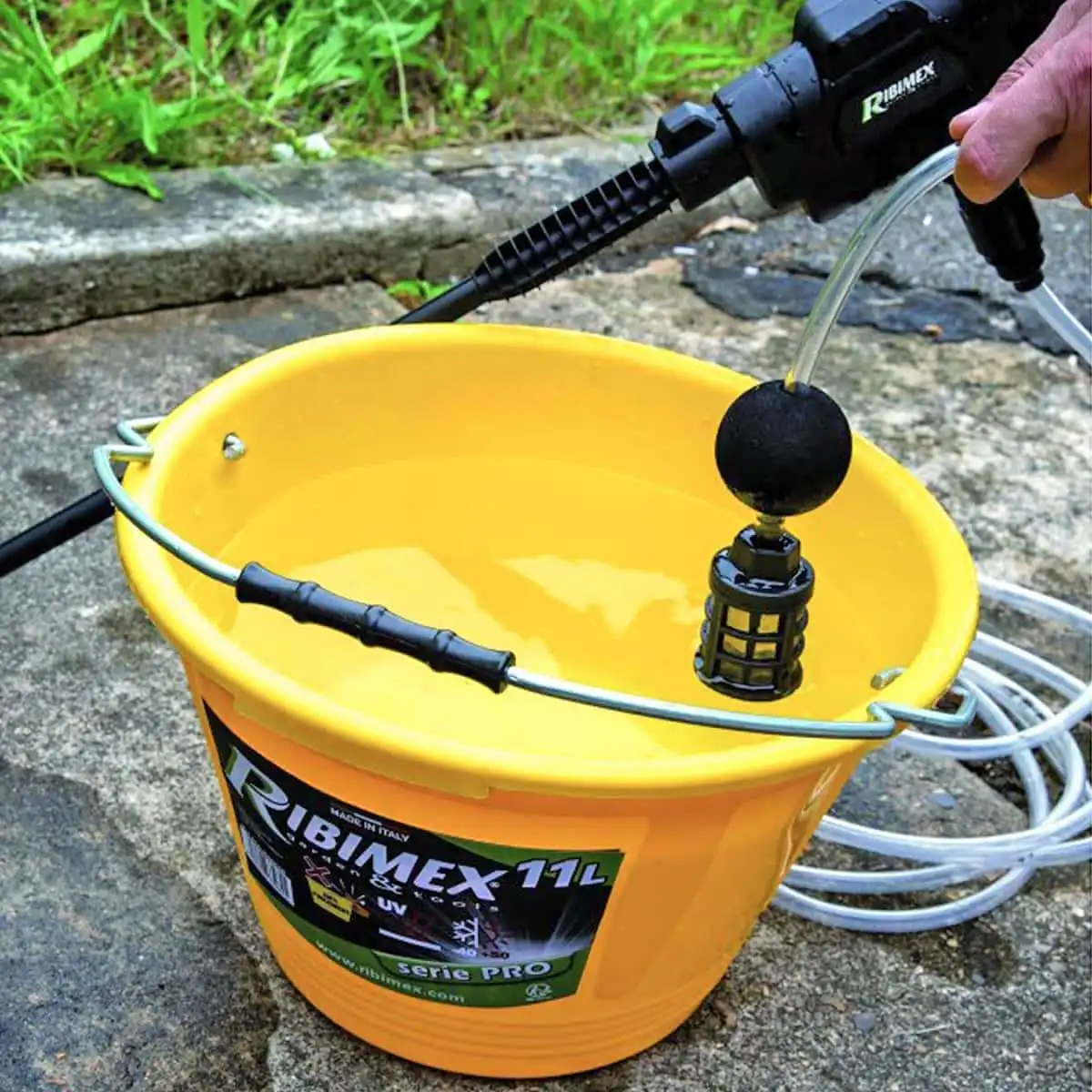Il est équipé d'un indicateur LED du niveau de charge sur la batterie et d'un tuyau d'aspiration 5m (avec filtre et flotteur).