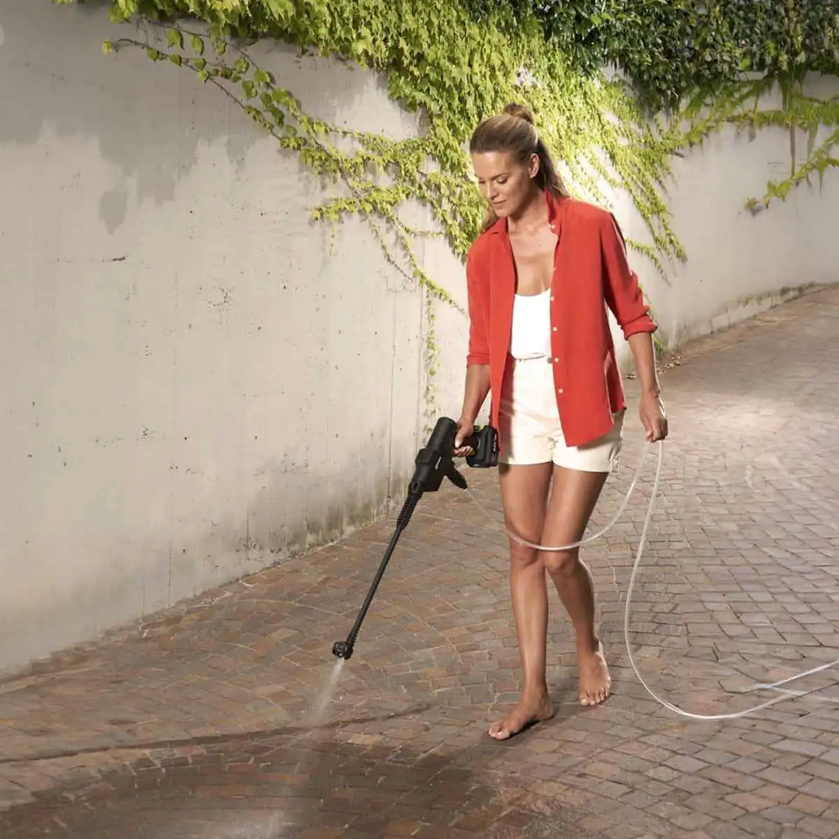 Ce nettoyeur moyenne pression apporte mobilité et flexibilité pour le nettoyage de la terrasse, des allées, du jardin et de la maison.