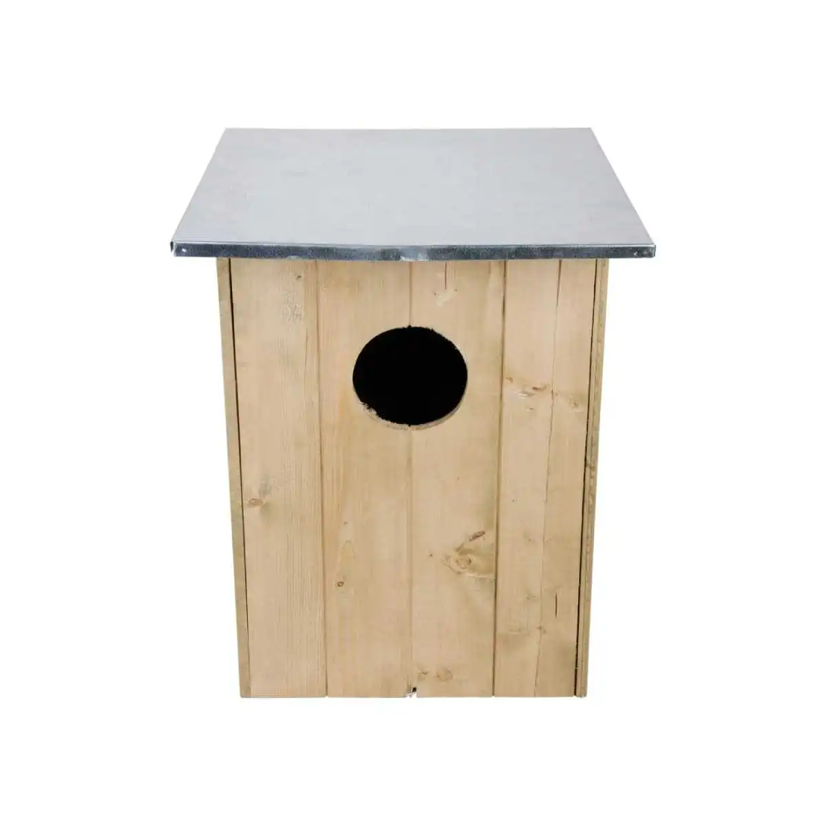 Ce nichoir en bois de pin est spécialement conçu pour abriter la chouette hulotte. De grande taille, il peut aisément accueillir un couple de chouettes et leurs petits. L'entrée circulaire de 12 centimètres de diamètre et la profondeur de la cabane à oiseaux permettent de recréer une ambiance similaire à celle du creux des arbres généralement apprécié par les chouettes. Discret, il s'intègre aussi bien aux décors forestiers que dans les parcs et jardins. C'est le nichoir idéal pour avoir une chance d'observer ces oiseaux nocturnes dans leur habitat naturel !