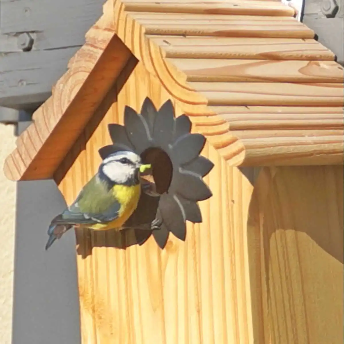 - Protection contre les prédateurs avec un soleil métallique entourant l'ouverture. Bon à savoir : certains prédateurs comme les pics ou les martres n'hésitent pas à agrandir le trou pour accéder aux oisillons.
