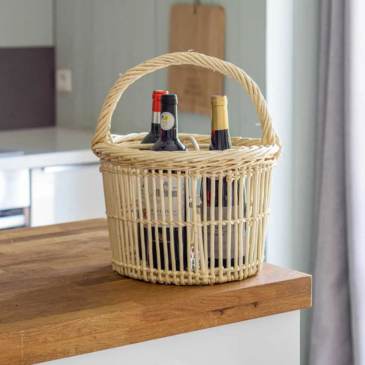 Ce panier à bouteilles en osier, joli et résistant, vous accompagnera en pique nique, à la cave ou à la maison.