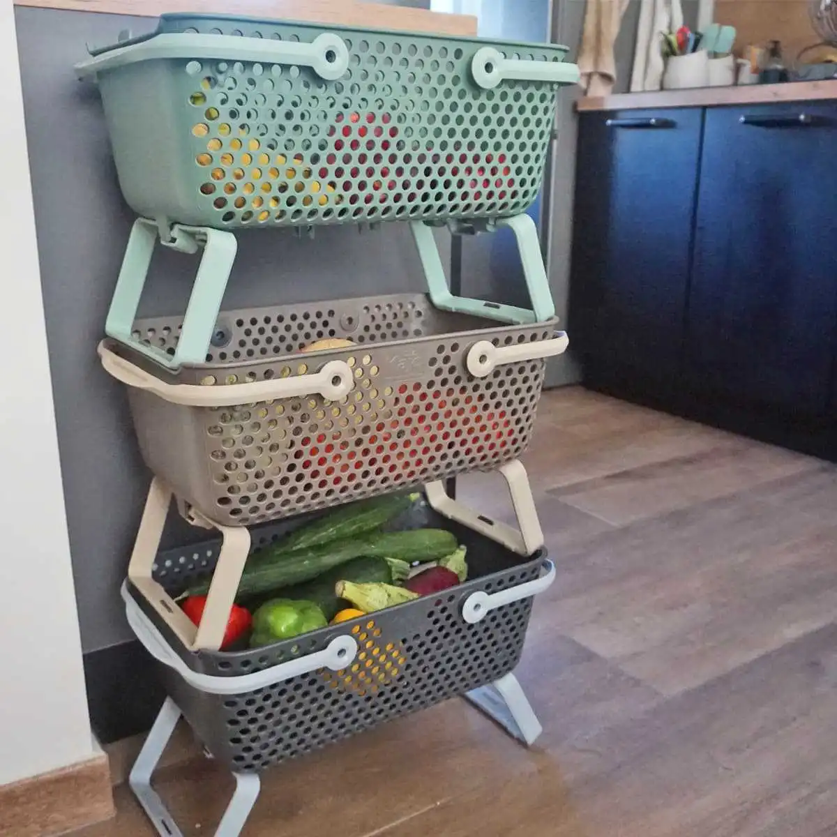 La grande contenance des paniers vous permet d'y stocker tous vos fruits et légumes, des plus petits au plus volumineux. Les poignées pliables et ergonomiques permettent un transport facile du panier et une stabilité de la prise en main.