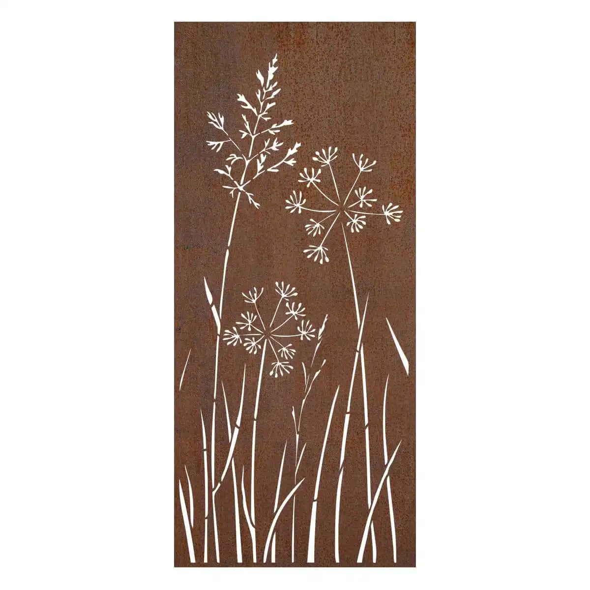 Panneau décoratif en métal L.80 x H.180cm - Ombellifères et fougère - Marron Très belle décoration, il va très bien sur le petit massif crée , ma cliente est très satisfaite , mis en valeur avec des gaura et des stoppa