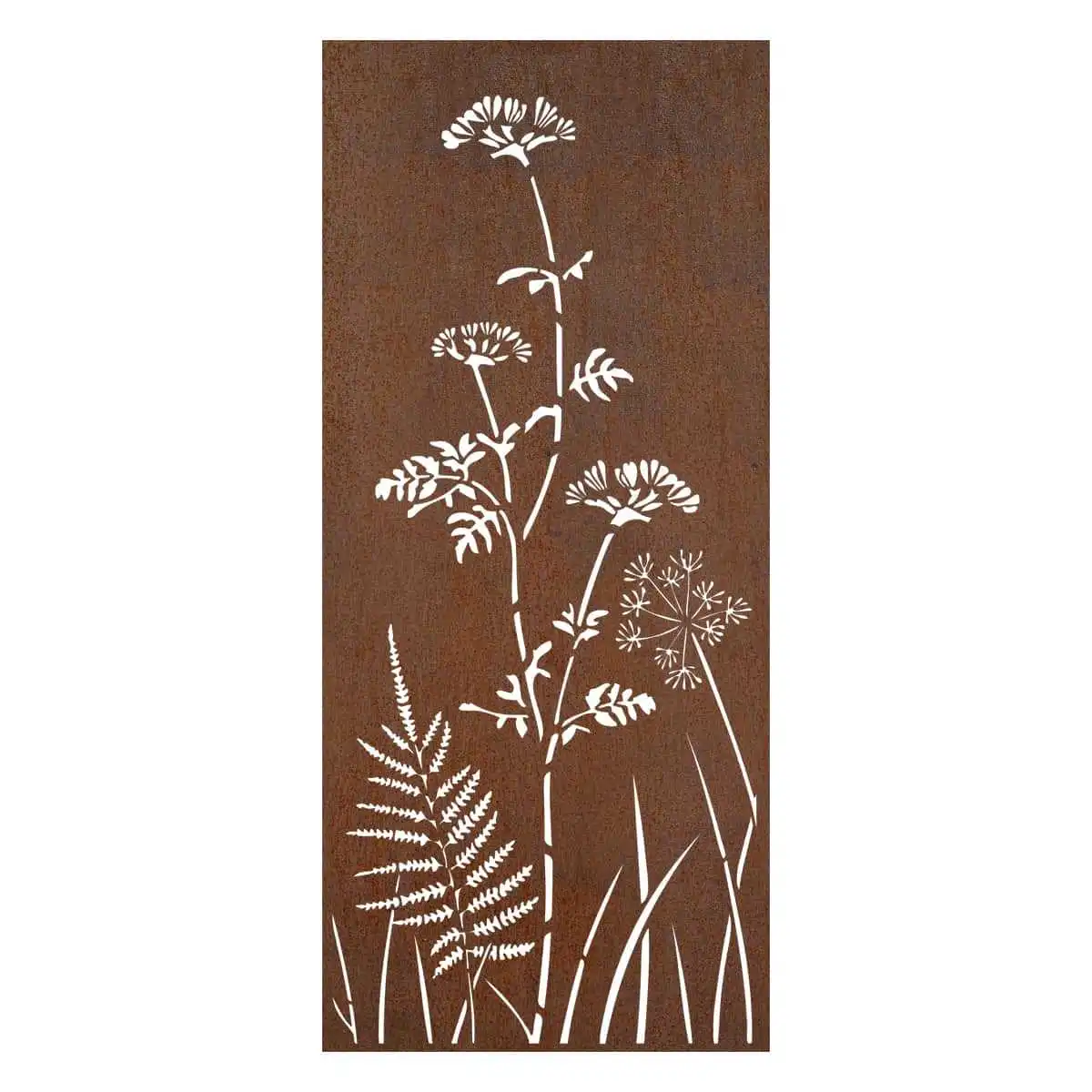 Panneau décoratif en acier corten L.80 x H.180cm - Ombellifères et fougère