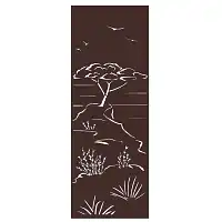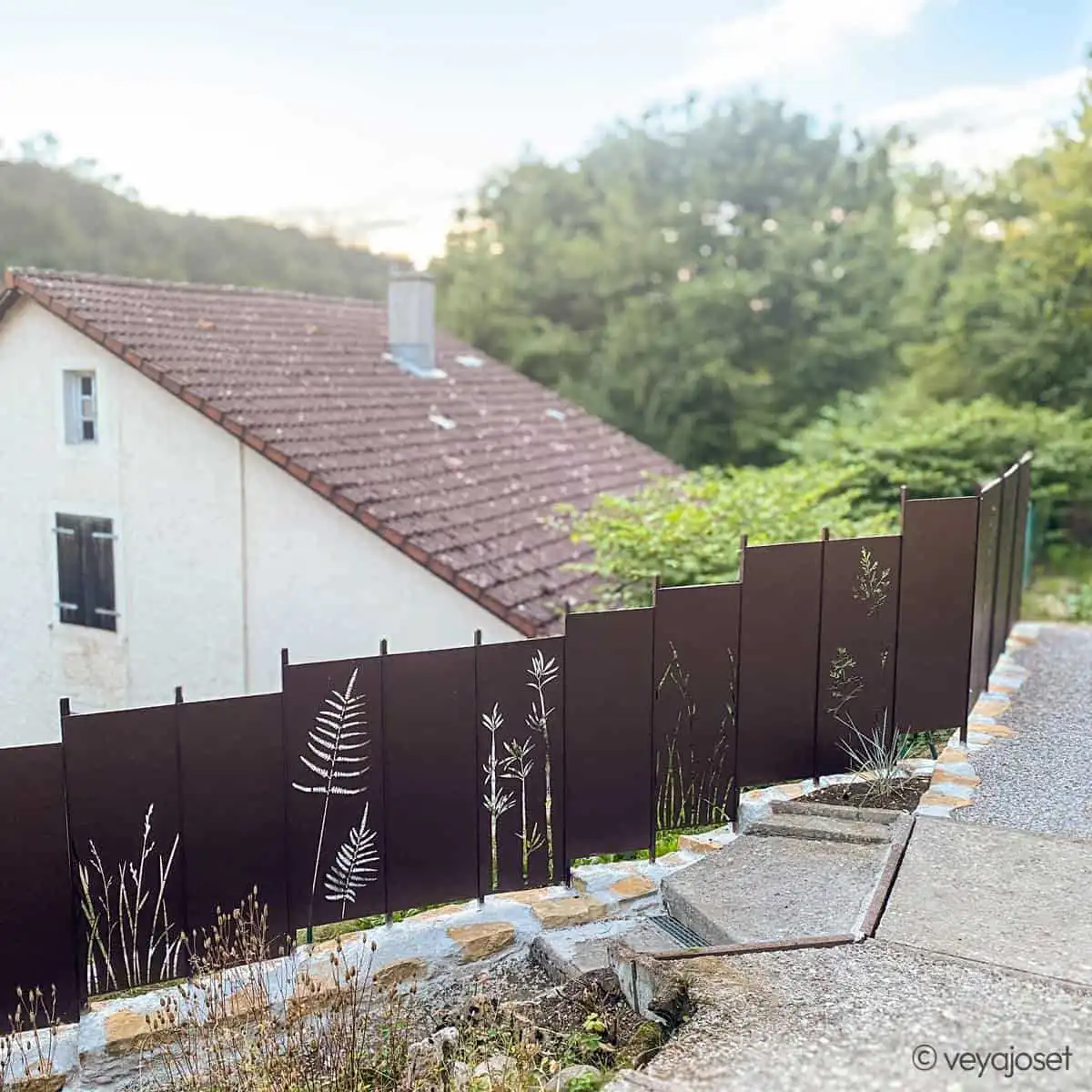 Panneau décoratif extérieur en métal L.53 x H.144cm - Herbes n°2 marron Vraiment superbe associé avec les poteaux en L de la même couleur vendu pour les panneaux en noisetier. En mix de panneaux uni et différents motifs. Installé en début d’année passée n’a pas bougé vraiment magnifique.