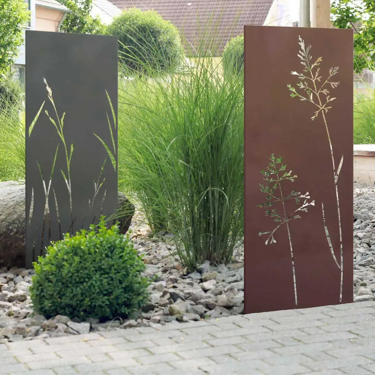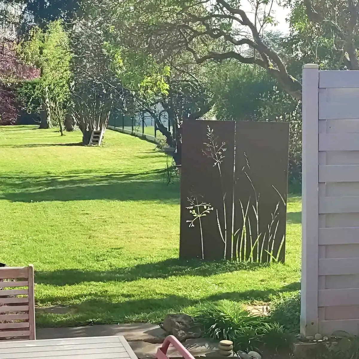 Ces panneaux décoratifs en métal, découpés au laser, sont conçus pour apporter une décoration originale au jardin ou tout autre paysage extérieur.