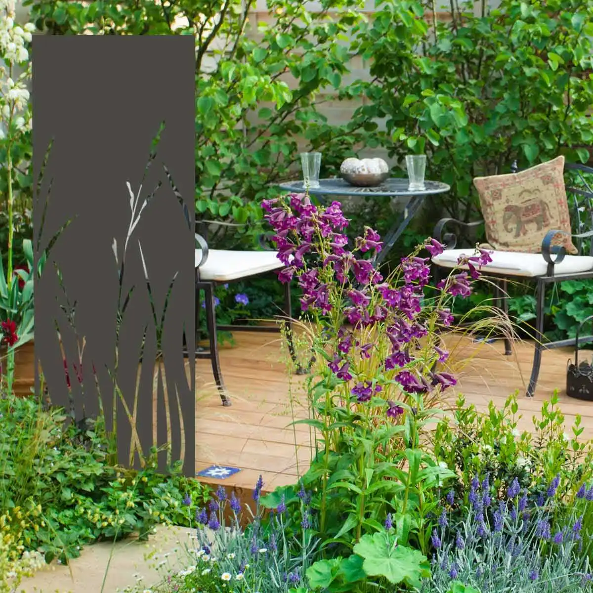 Panneau décoratif extérieur en métal L.53 x H.144cm - Herbes n°1 gris J ai pris plusieurs panneaux pour mettre en valeur des massifs, très décoratif, facile à installer.