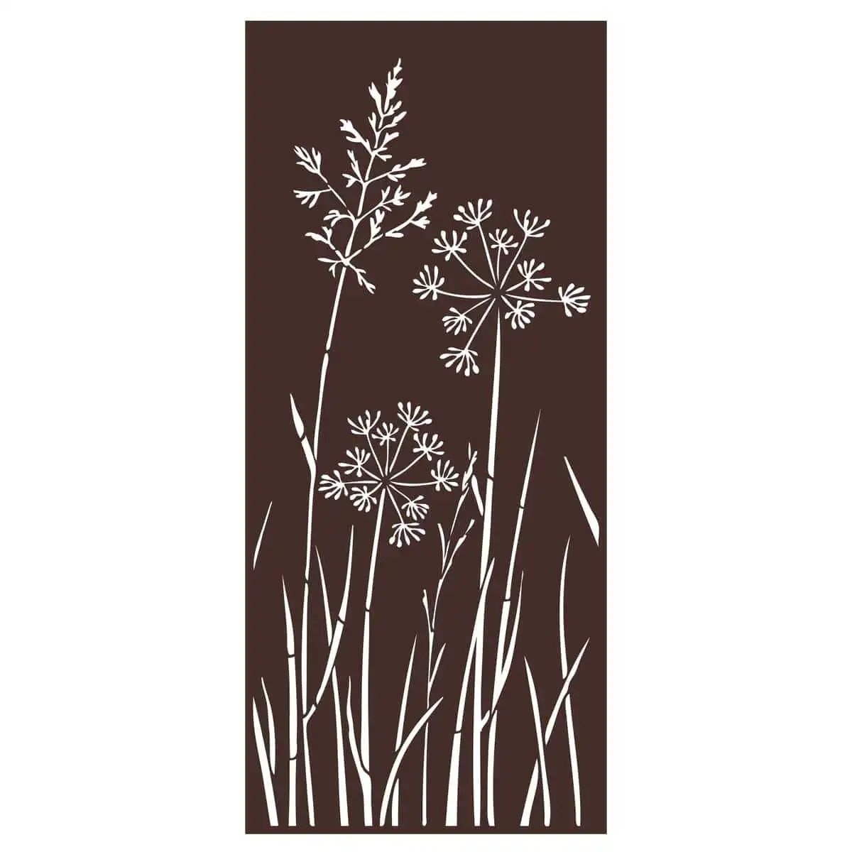 Panneau décoratif en métal L.80 x H.180cm - Ombellifères et fougère - Marron Très belle décoration, il va très bien sur le petit massif crée , ma cliente est très satisfaite , mis en valeur avec des gaura et des stoppa