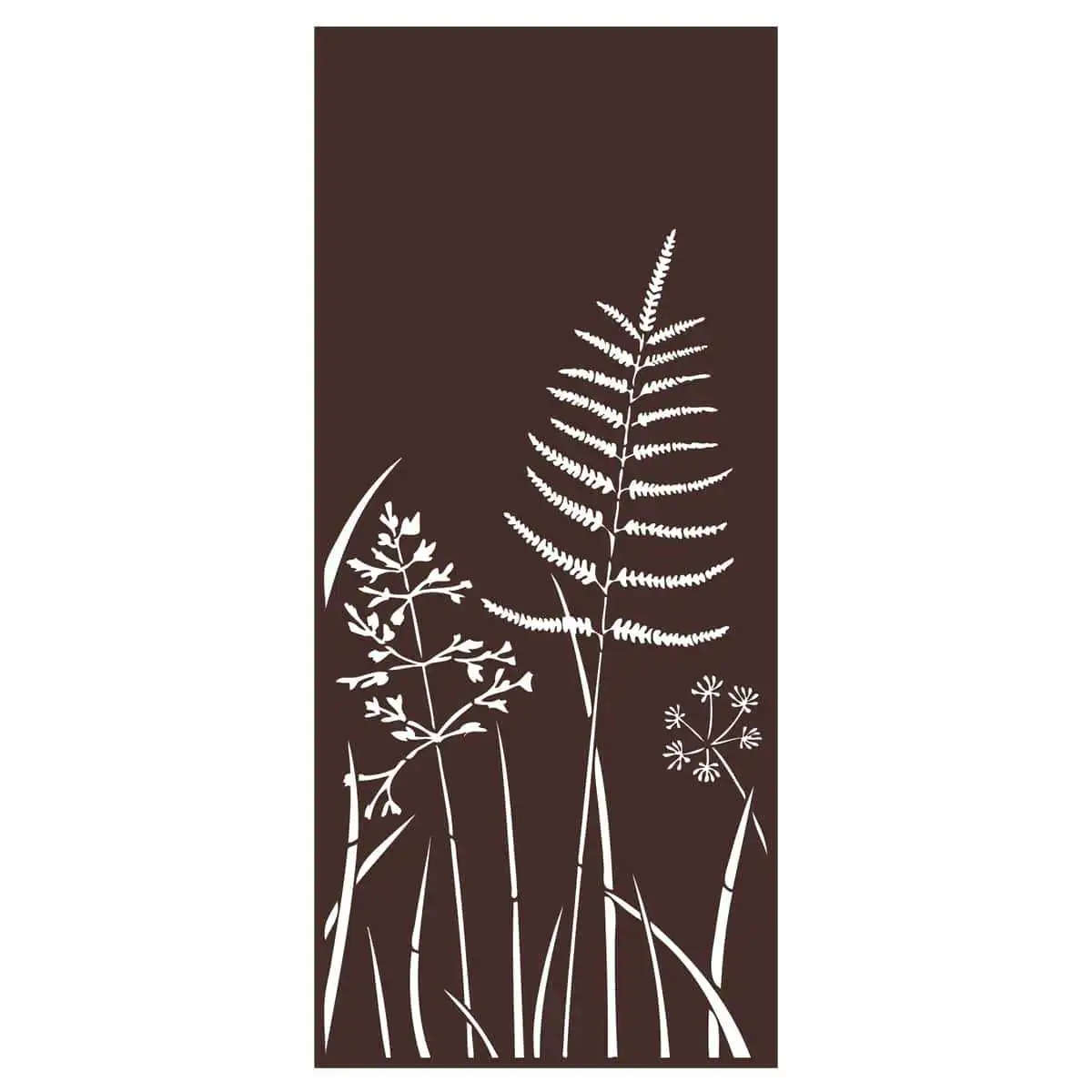 Panneau décoratif en métal L.80 x H.180cm - Fougère et graminées - Marron