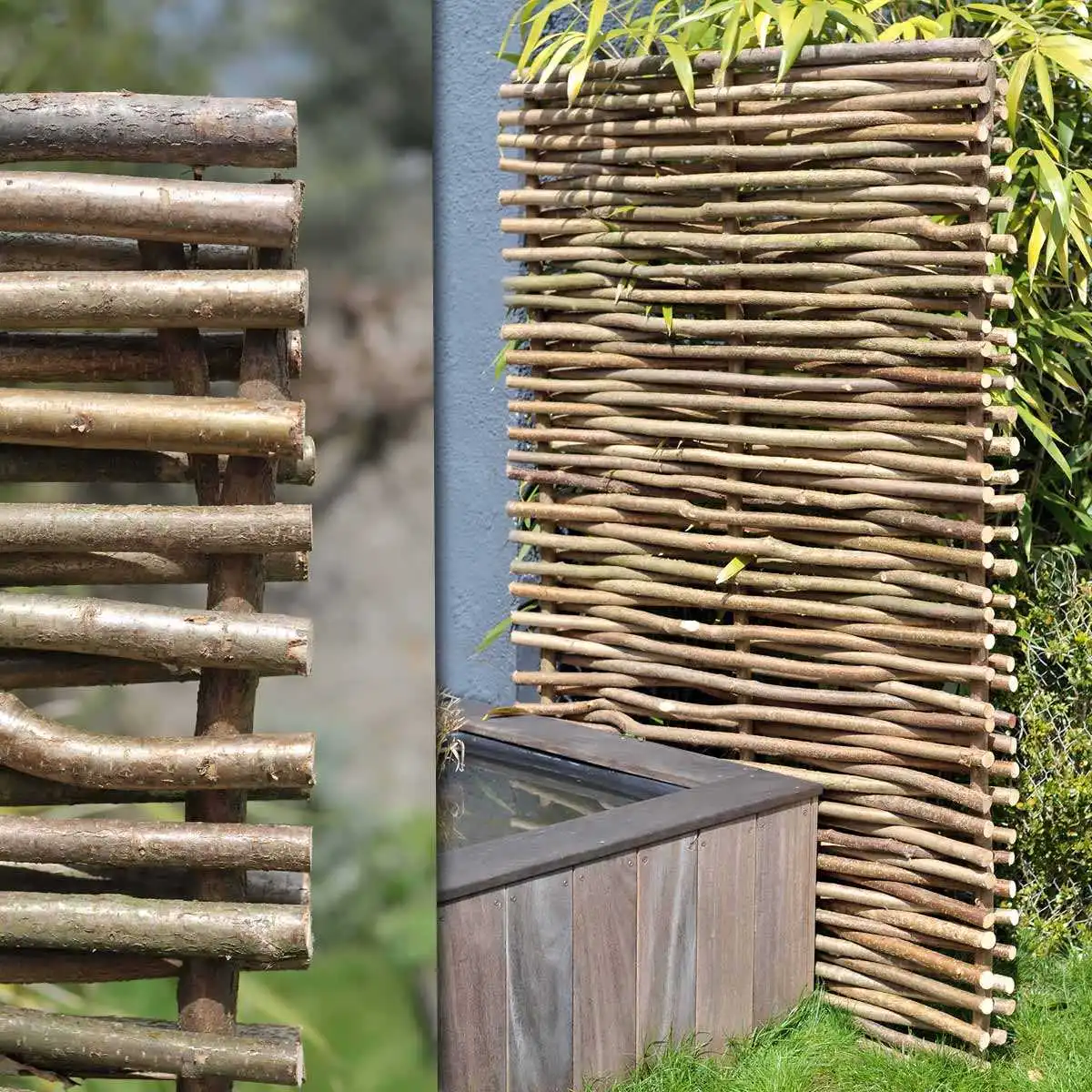 Panneau noisetier tressage horizontal ou vertical Beaux mais Durée de vie moi aussi..5 ans..il faut recommencer!