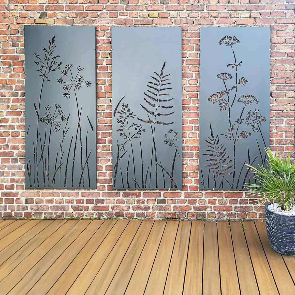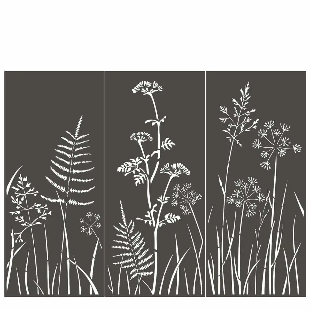 Panneaux décoratifs en métal L.240 x H.180cm - Scène végétale - Gris - lot de 3 Magnifique Fait la fierté de notre propriété!!!!