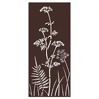 Panneau décoratif en métal L.80 x H.180cm - Ombellifères et fougère - Marron Très belle décoration, il va très bien sur le petit massif crée , ma cliente est très satisfaite , mis en valeur avec des gaura et des stoppa