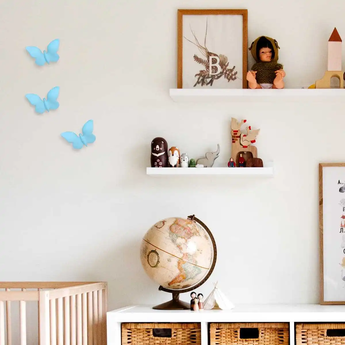 Très simple à fixer, l'envolée de papillons apporte une touche de fraîcheur dans votre intérieur. Ces créations poétiques sont idéales pour décorer une chambre d'enfant, une babyshower, un baptême...
