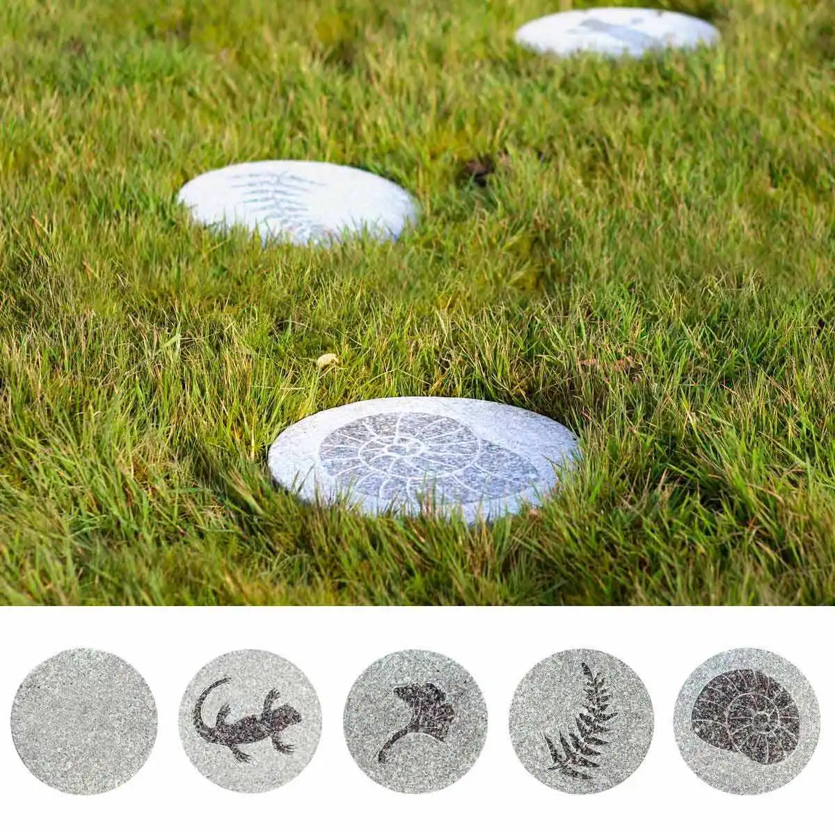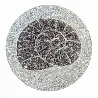 Chacune de nos dalles rondes est décorée d'un fossile : ginko, fougère, lézard ou escargot. Sculpté dans la pierre, le fossile est ensuite poli pour une finition lisse et raffinée. Un design à la fois moderne et intemporel !