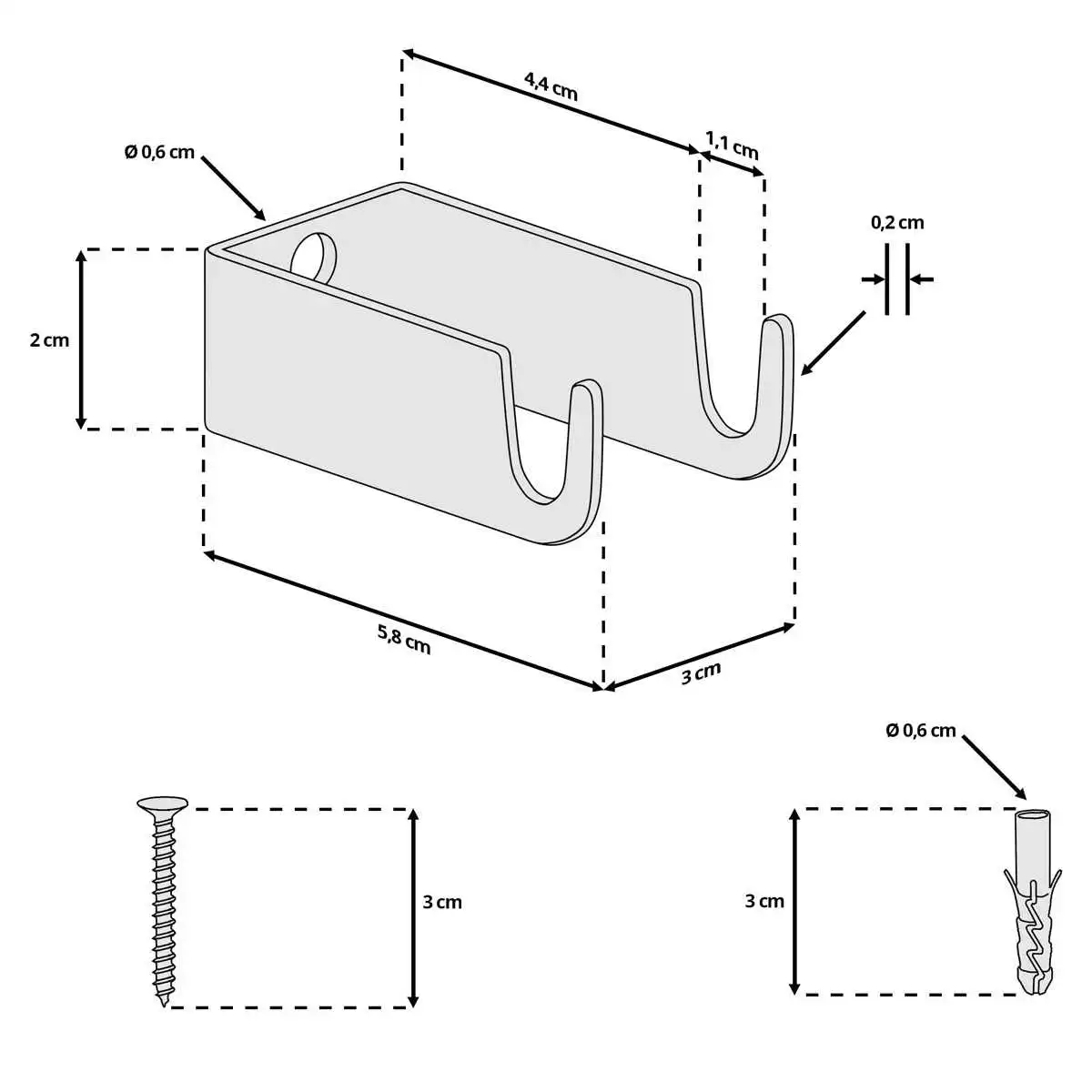 - Contenu du paquet : 2 pattes de fixation murale + 2 vis et 2 chevilles (6x 30mm).