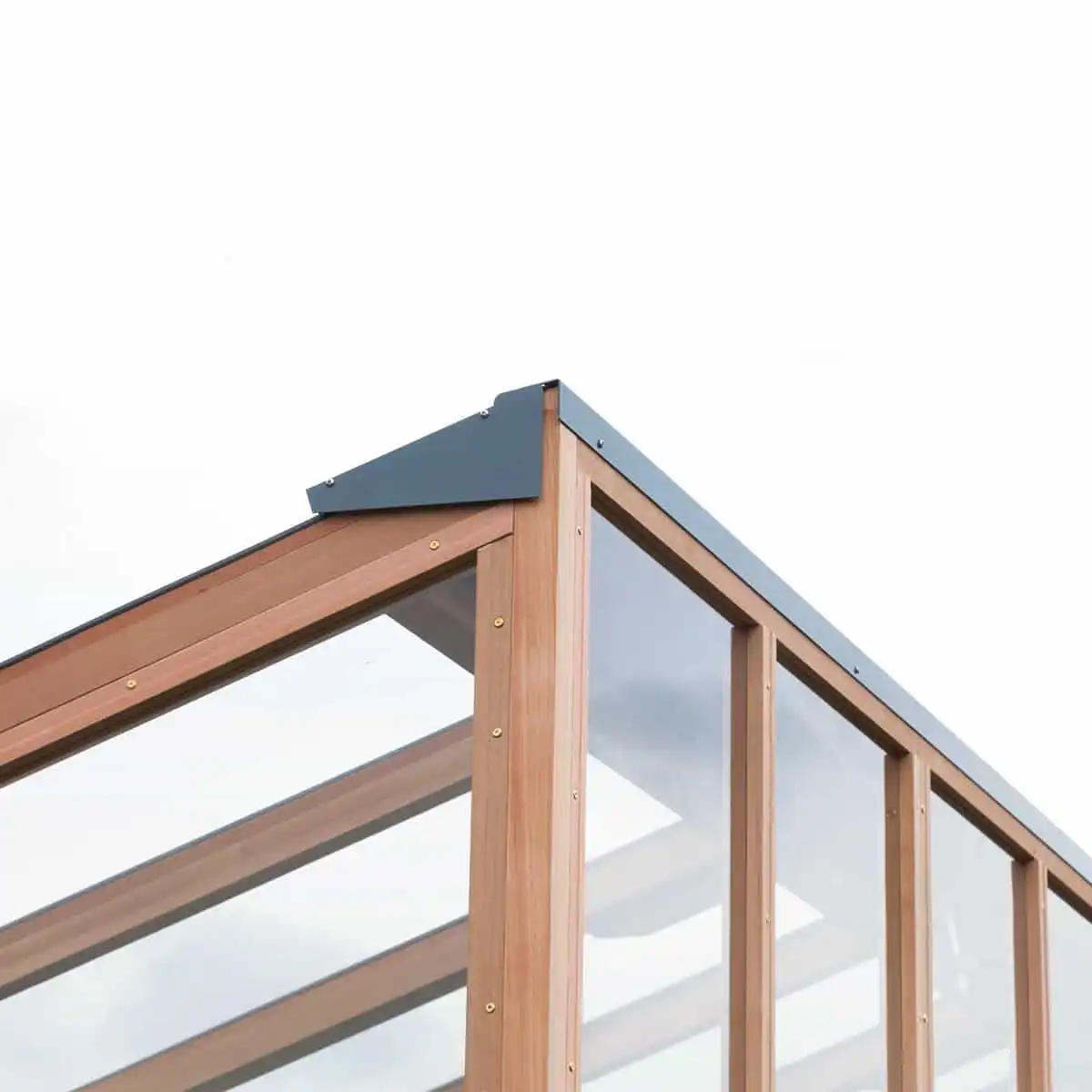 Alliant charme, originalité et praticité, les serres sont fabriquées à la main dans les ateliers de la menuiserie « Gabriel Ash » dans le Cheshire au nord de l'Angleterre. Elles sont entièrement conçues en bois de cèdre rouge du Canada certifié PEFC.