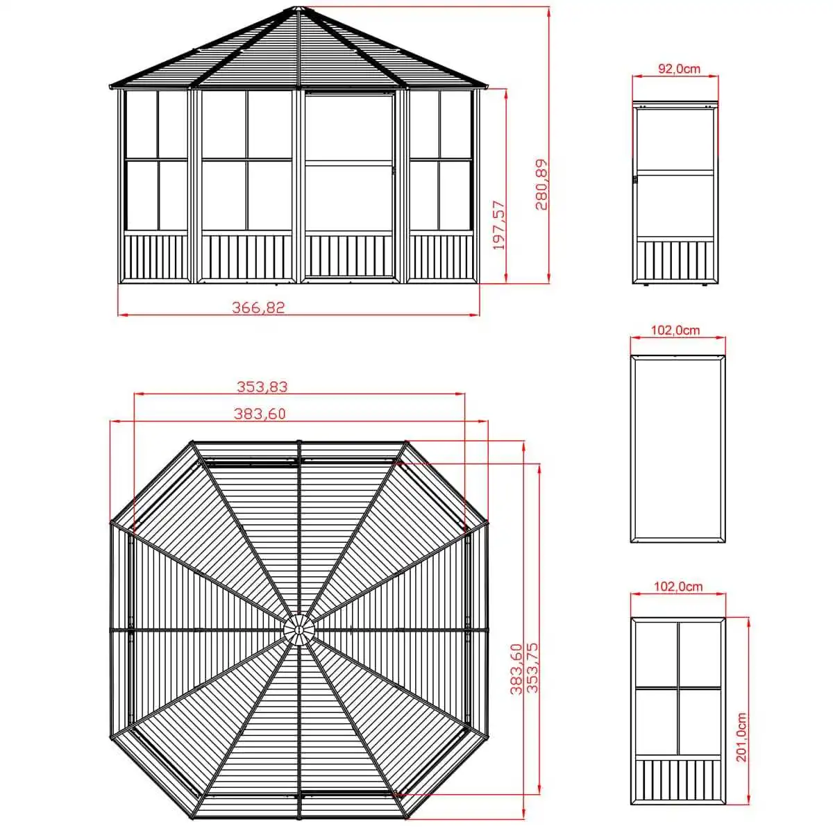 - Dimensions hors-tout : 384 x 384 x 281cm